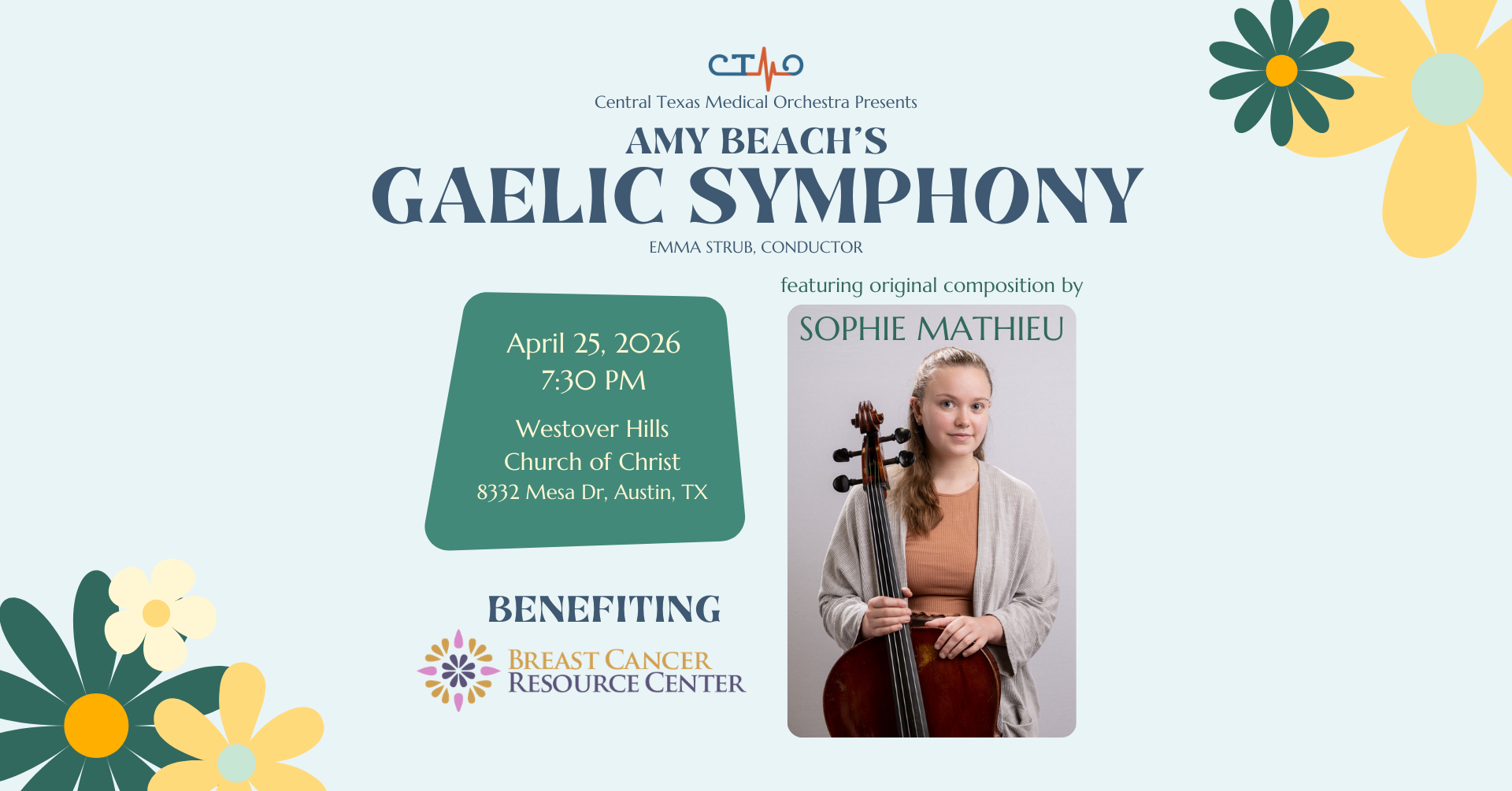 The orchestra will perform Amy Beach’s Gaelic Symphony as well as Sophie Mathieu’s When the Forest Fell Silent at our concert benefiting the Breast Cancer Resource Center on April 26, 2026